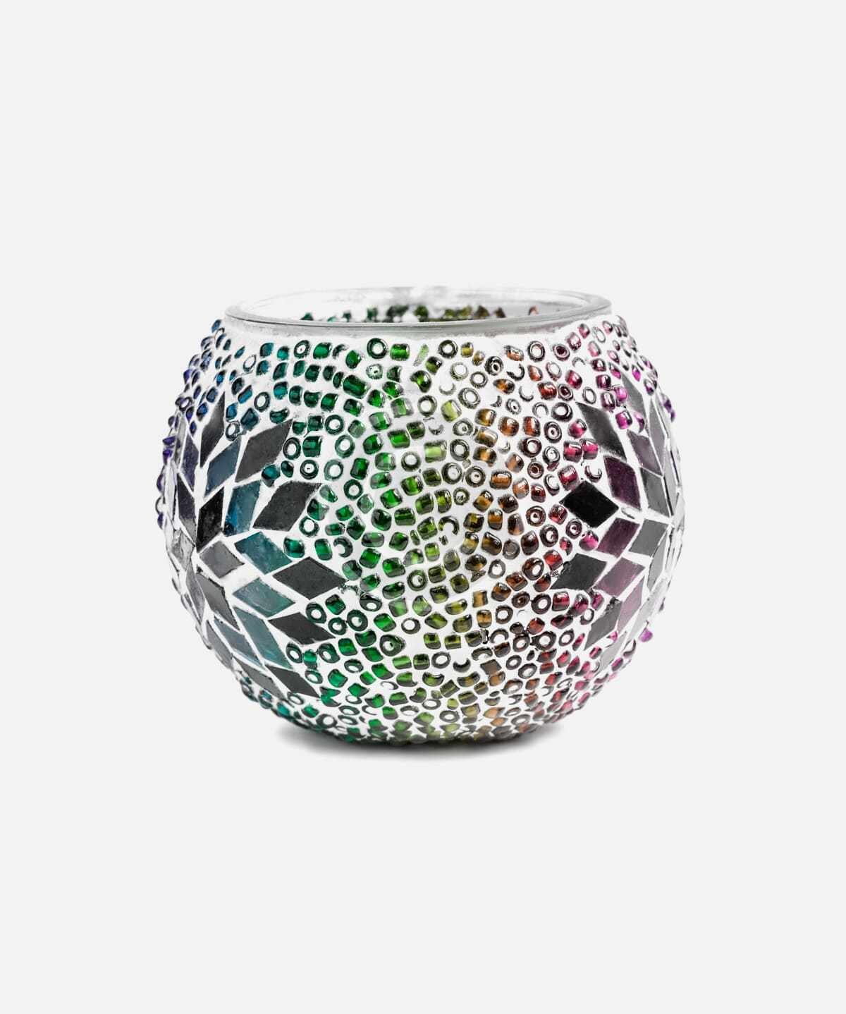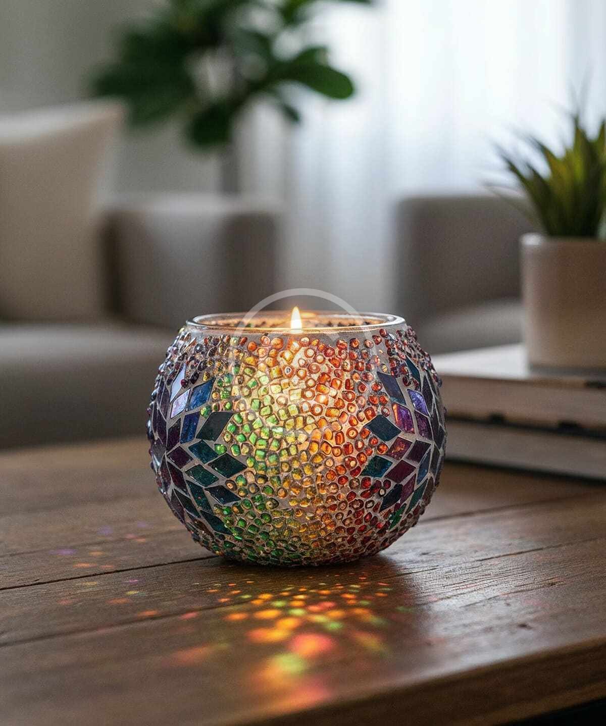 This candle holder is absolutely beautiful. The colorful mosaic catches the light perfectly and creates a warm, cozy atmosphere. You can truly feel the handmade quality in every detail, and it looks stunning both lit and unlit.